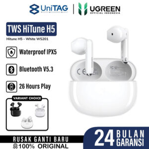 GARANSI RUSAK GANTI BARU selama 24 BULAN! (Bukan cuma 18 bulan seperti yang lain) Earphone TWS UGREEN Hitune H5 Bluetooth 5.3 True Wireless Earbuds Nirkabel 4-Mic merupakan bluetooth earphone yang memiliki desain half ear sehingga nyaman digunakan pada jangka waktu lama. Mengapa beli di toko kami ? – Garansi barang original (terbukti palsu, kami ganti…