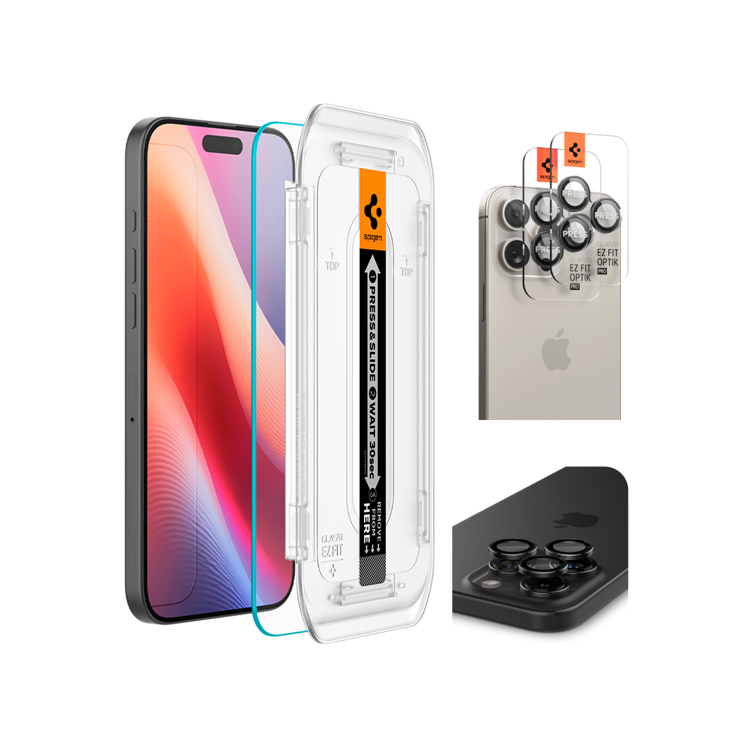 15 Pro Max GlastR EZ Fit – Transparency+Spigen 15 Pro / 15 Pro Max GlastR EZ Fit Optik Pro – Black
