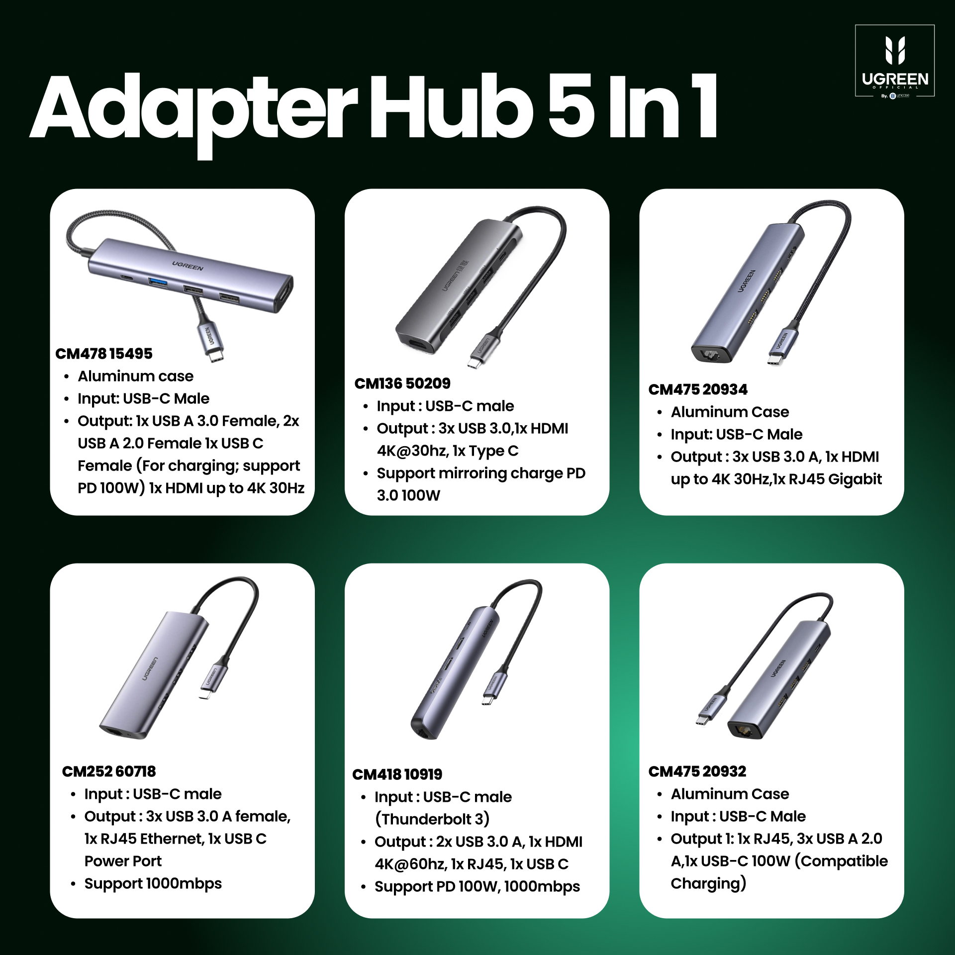 Be the first to review “UGREEN Hub 5 in 1 USB C to 3A 1C 1HDMI”