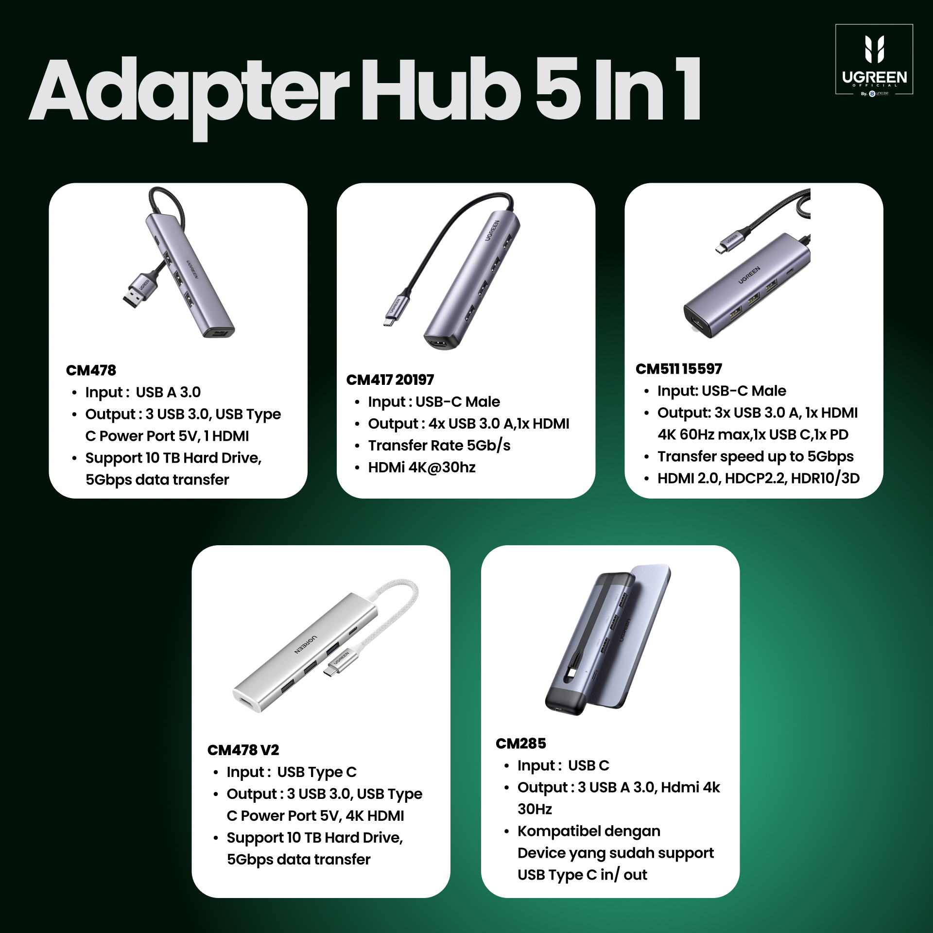 UGREEN HUB Adapter With LAN & HDMI port for Laptop Computer Macbook kini hadir dengan Port HDMI dan RJ45/LAN port serta port lainnya yang bikin transfer semua data lebih cepat, Presentasi dengan Internet kencang, Siap hadapi semua tantangan !