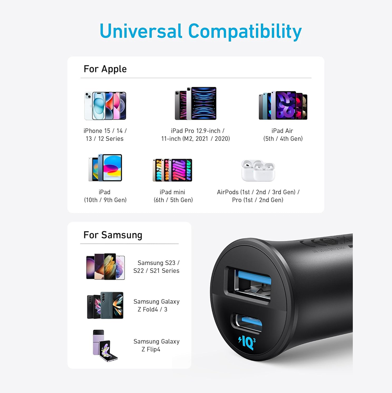 – Universal Compatibility for iPhone, iPad, Samsung