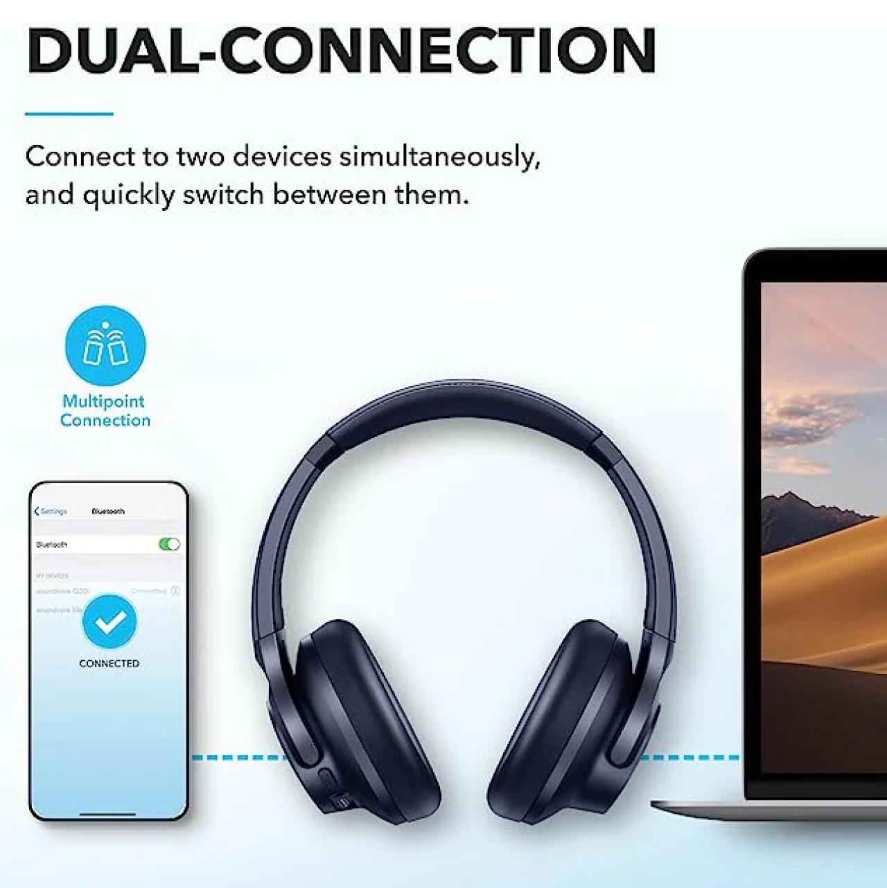 ANKER Headphone for IPhone Samsung Android Soundcore Q20i Active Noise Cancellation Dual Connection Long Life Battery
