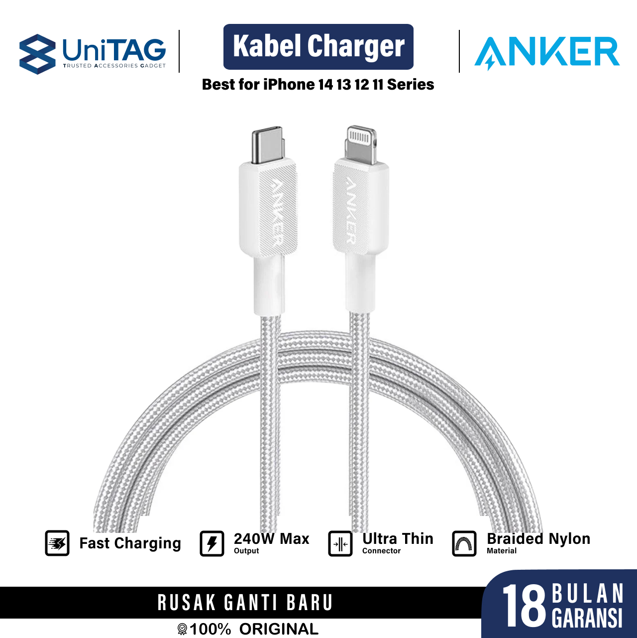 Anker Kabel Charger USB C to Lightning 60W Braided 322 Powerline menawarkan kombinasi desain ringkas, daya tahan tinggi dan pengisian cepat. Ideal untuk penggunaan di rumah, kantor atau saat bepergian, tanpa ribet dan tetap rapi!