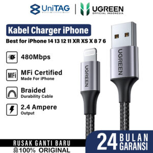 USB A 2.0 to Micro USB QC 2.0 UGREEN US290 Charging Cable Merupakan kabel dari Ugreen yang dilapisi dengan nylon braided serta support pengisian daya QC 3.0 dengan output maksimal 18W.
