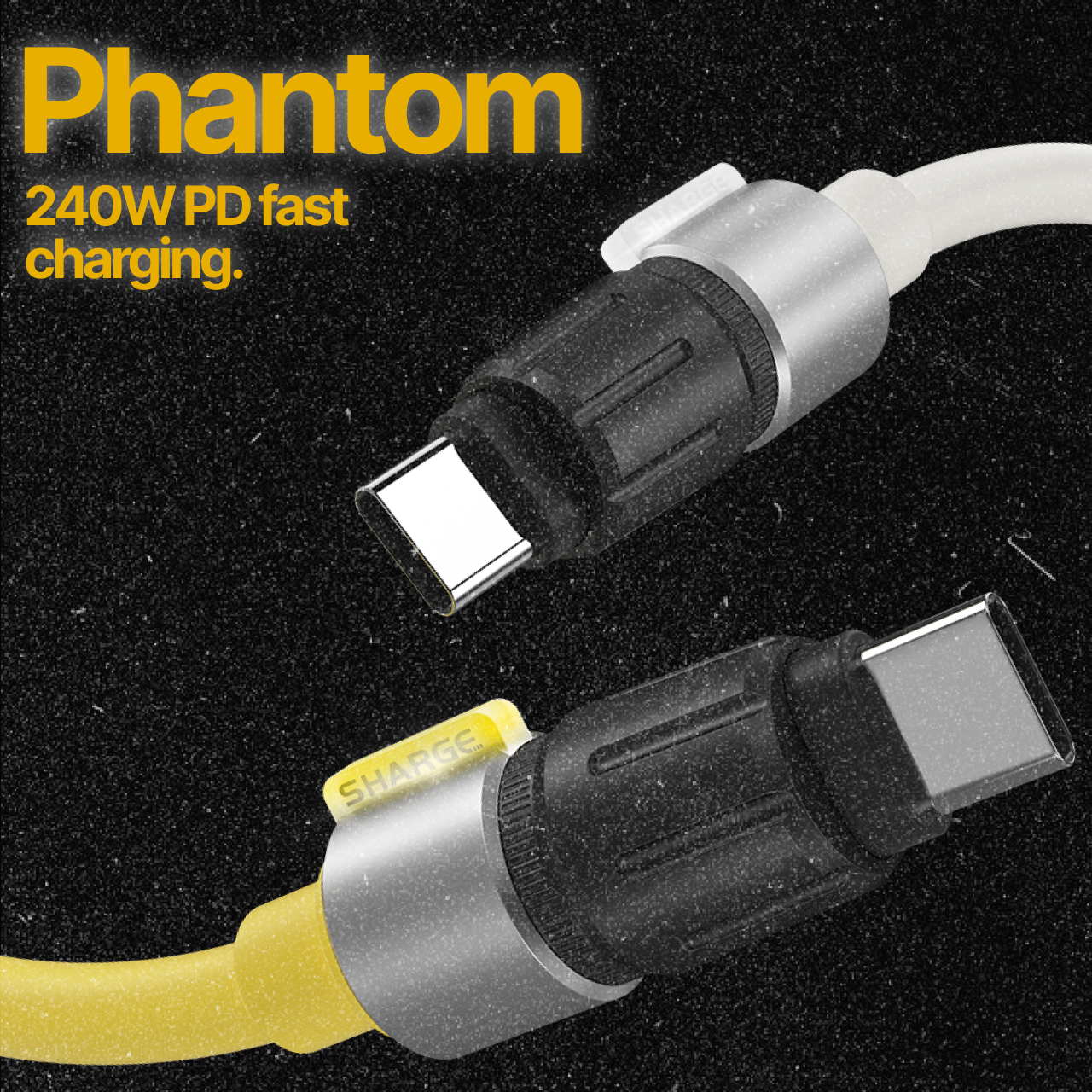 Sharge Phantom CC merupakan kabel Charger USB C Cable to USB C 5A-240W dengan futuristik cyberpunk berbahan soft silicone yang nyaman digunakan,tekuk,dan genggam lengkapi E-Marker Chip yang memaksimalan pengisian daya serta transfer data, nikmati isi daya device apa saja dengan satu kabel data !