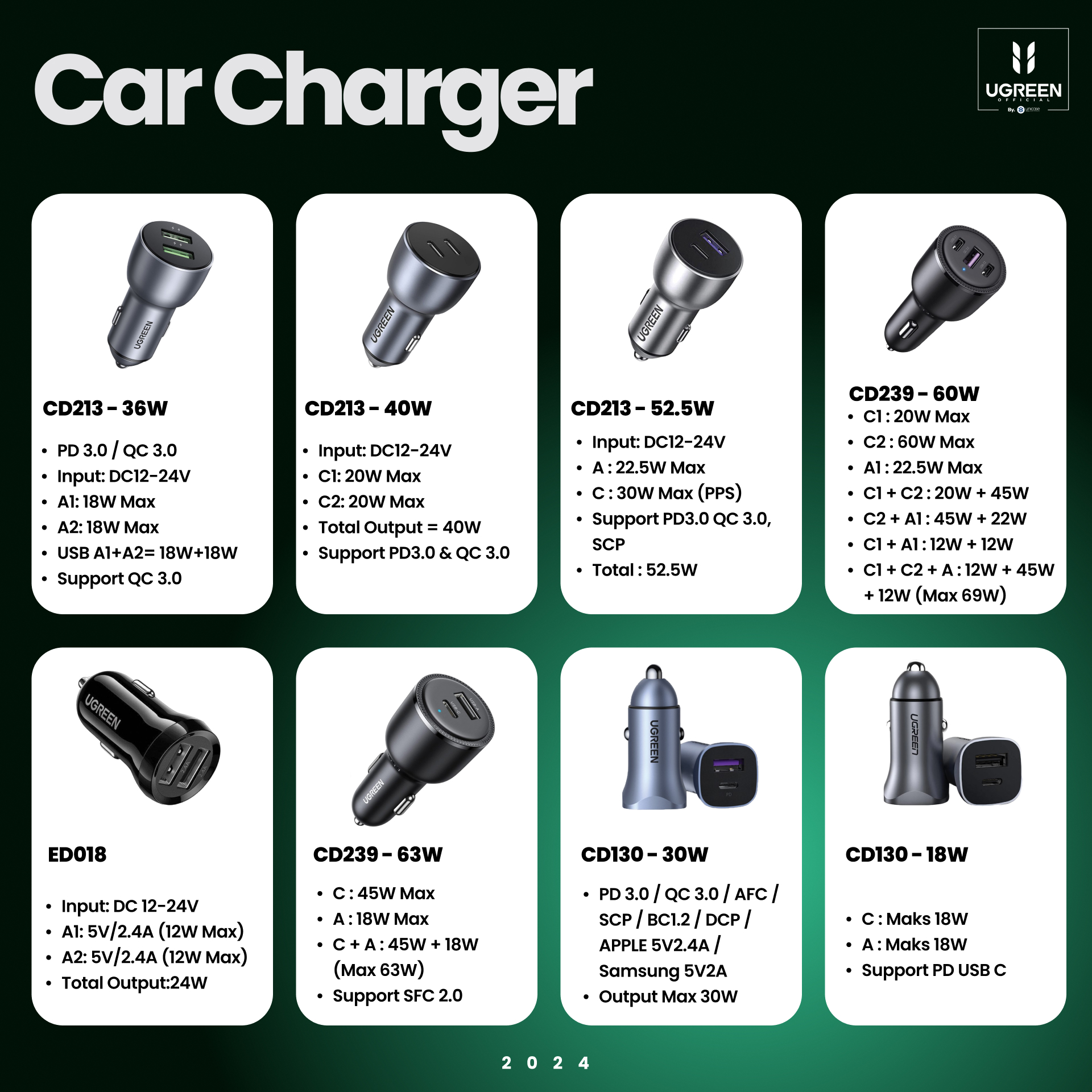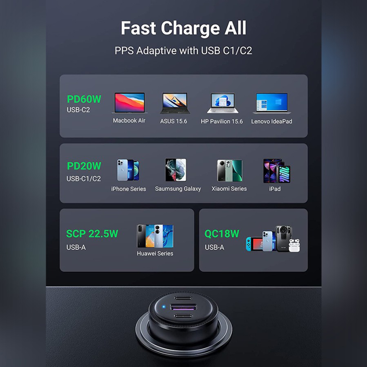 1x UGREEN Car Charger CD213 EC705 EC703 EC701 EC305