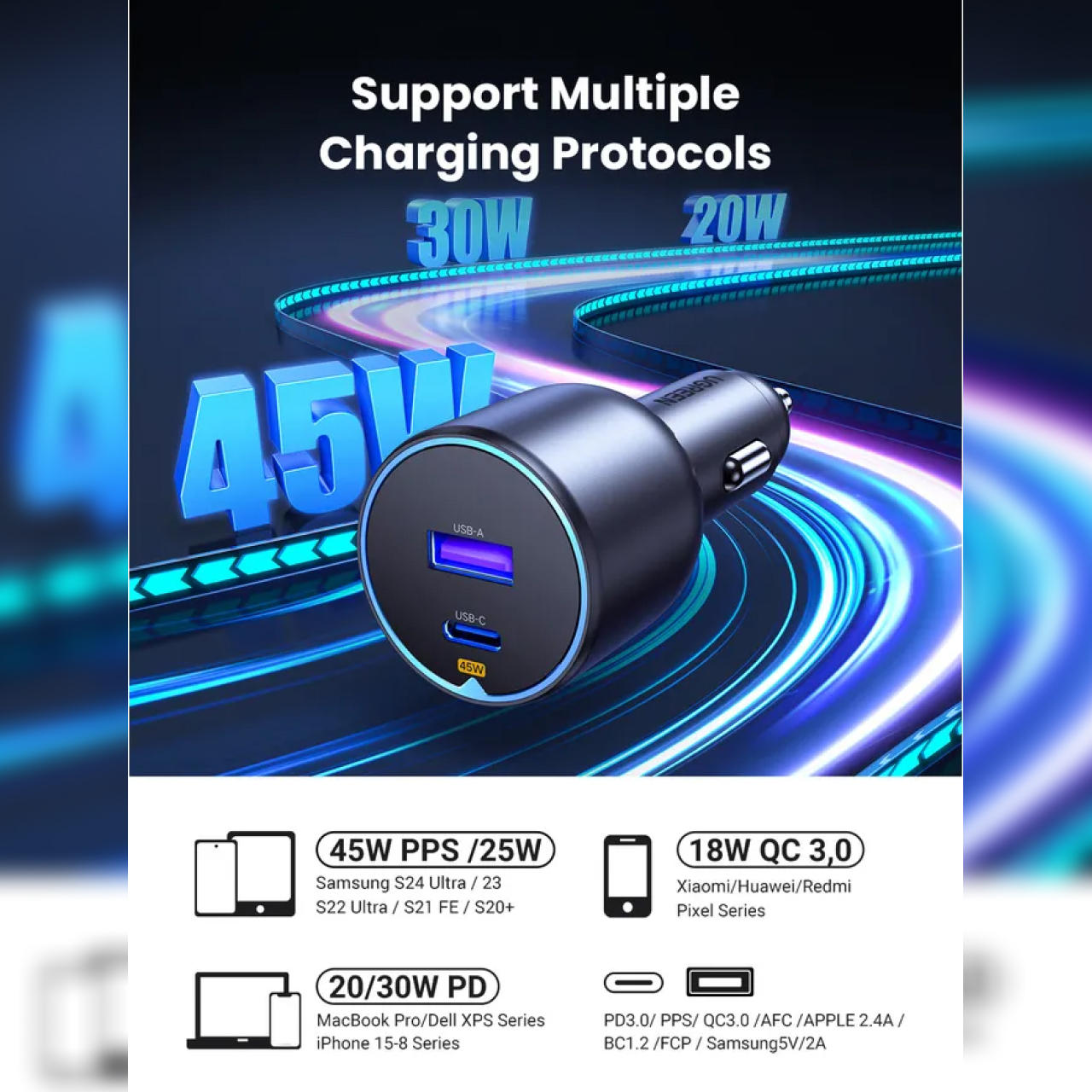 UGREEN Car Charger 130W/75W/63W/52.5W/40W/30W Dual / Triple Port