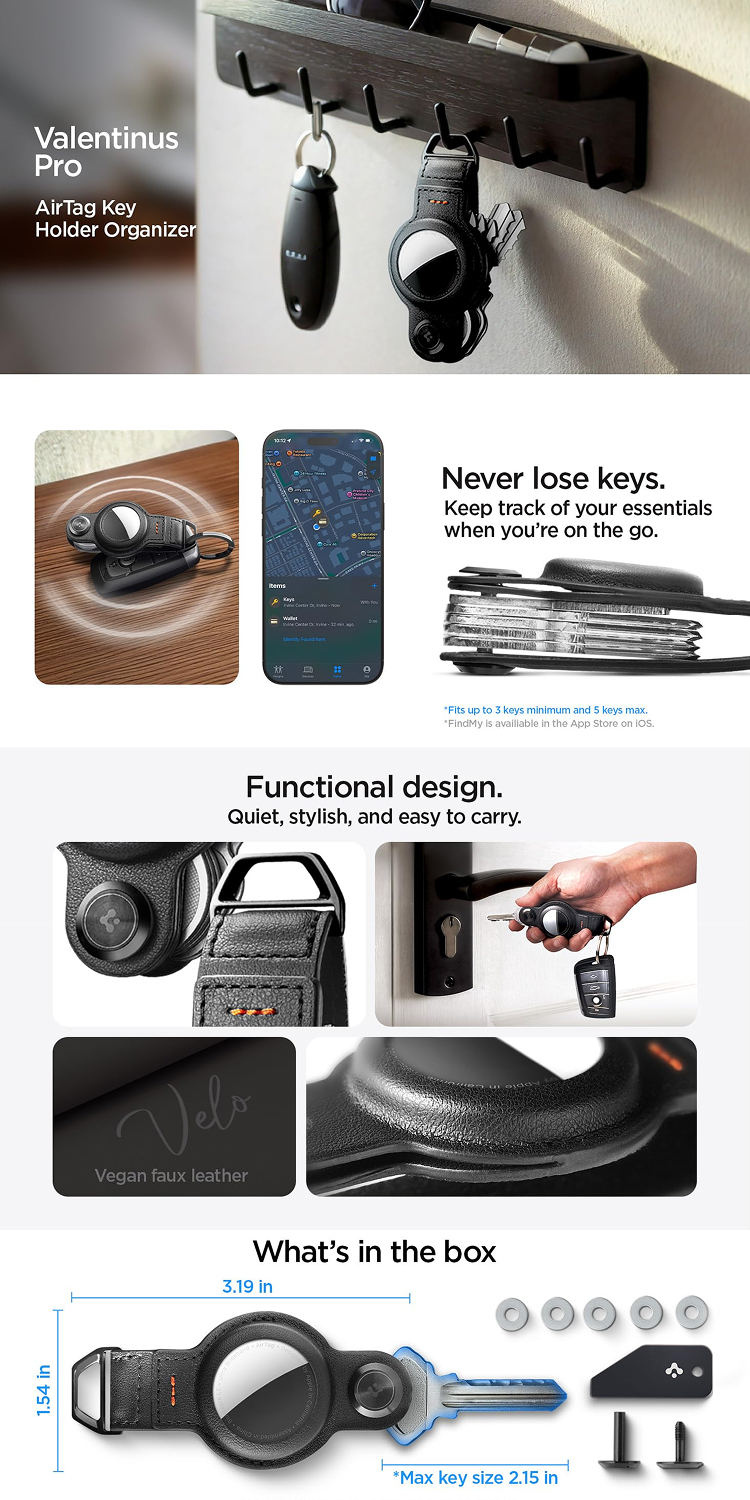 1x Spigen for AirTag 2 / AirTag Case With Key Holder Valentinus Pro – Black