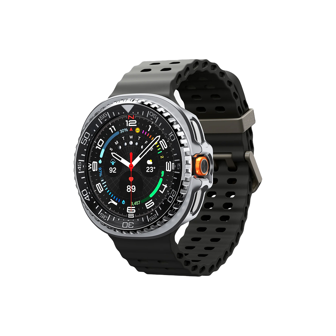 Casing stainless steel yang ramping dan pelindung bezel bekerja bersama