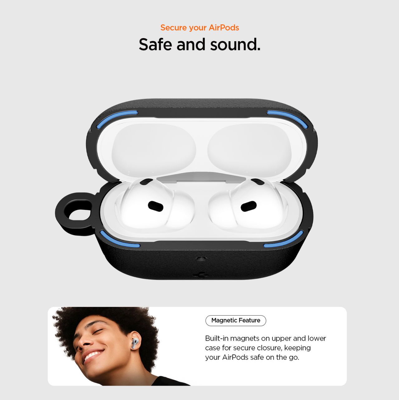 Case forAirPods Pro 3 Spigen Vault terbuat dari kombinasi hardcase dan TPU (silikon). Dilengkapi dengan pengunci magnetic yang aman, tekstur grip anti slip, dan carabiner untuk melindungi secara maksimal.