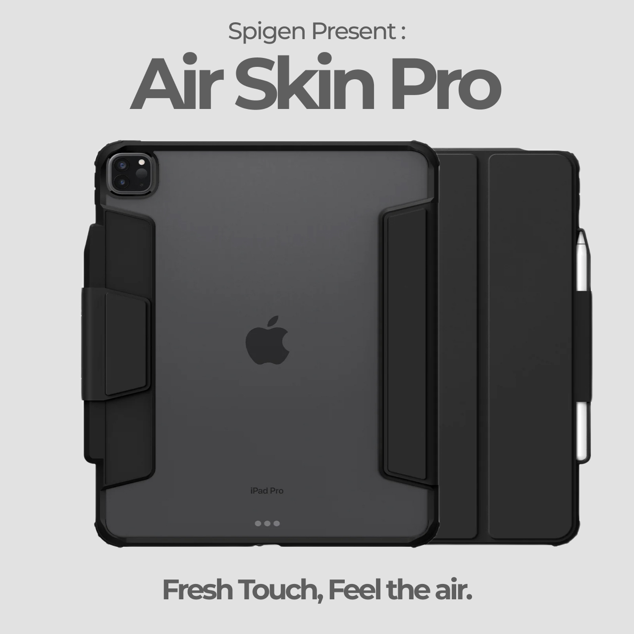 Case iPad Pro 13 inch (2024) / 11 inch (2024) / 12.9 inch (2022/21) / 11 inch (2022 / 2021 / 2020 / 2018) Spigen Air Skin Pro merupakan Flip Cover Case dengan magnet lock agar flip cover menempel erat, air cushion khas spigen yang tahan benturan bikin iPad kamu fully secure !