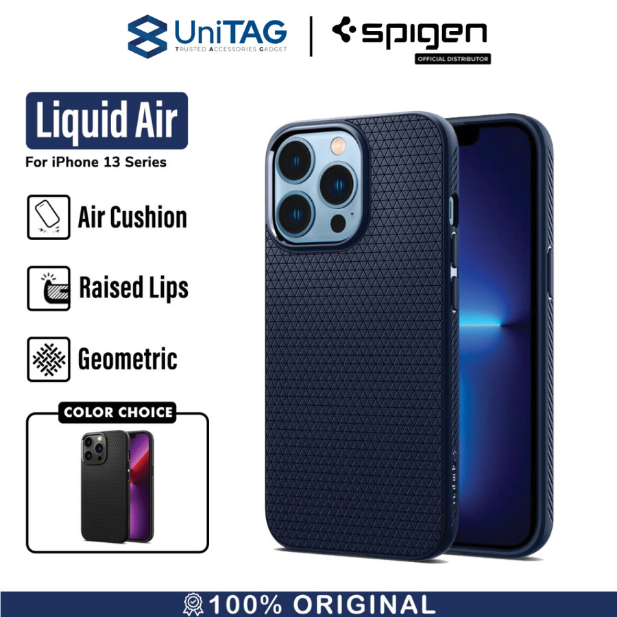 Case iPhone 13 Series Spigen Liquid Air merupakan full TPU Casing (Softcase) premium yang fleksibel dan tahan lama. Spigen Liquid Air dibekali dengan Air Cushion Technology dan pola geometric pada bagian belakang yang mewah.