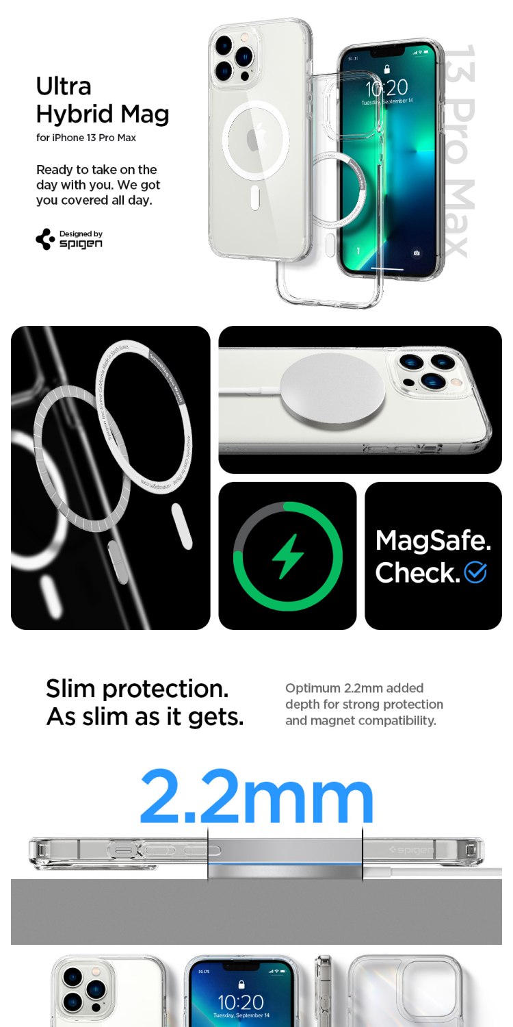 Case iPhone 13 Series Spigen Ultra Hybrid / Ultra Hybrid MagSafe merupakan Hybrid casing yang terbuat dari bahan PC (Hardcase) yang bening, dan TPU (Softcase) pada bagian bumper samping.
