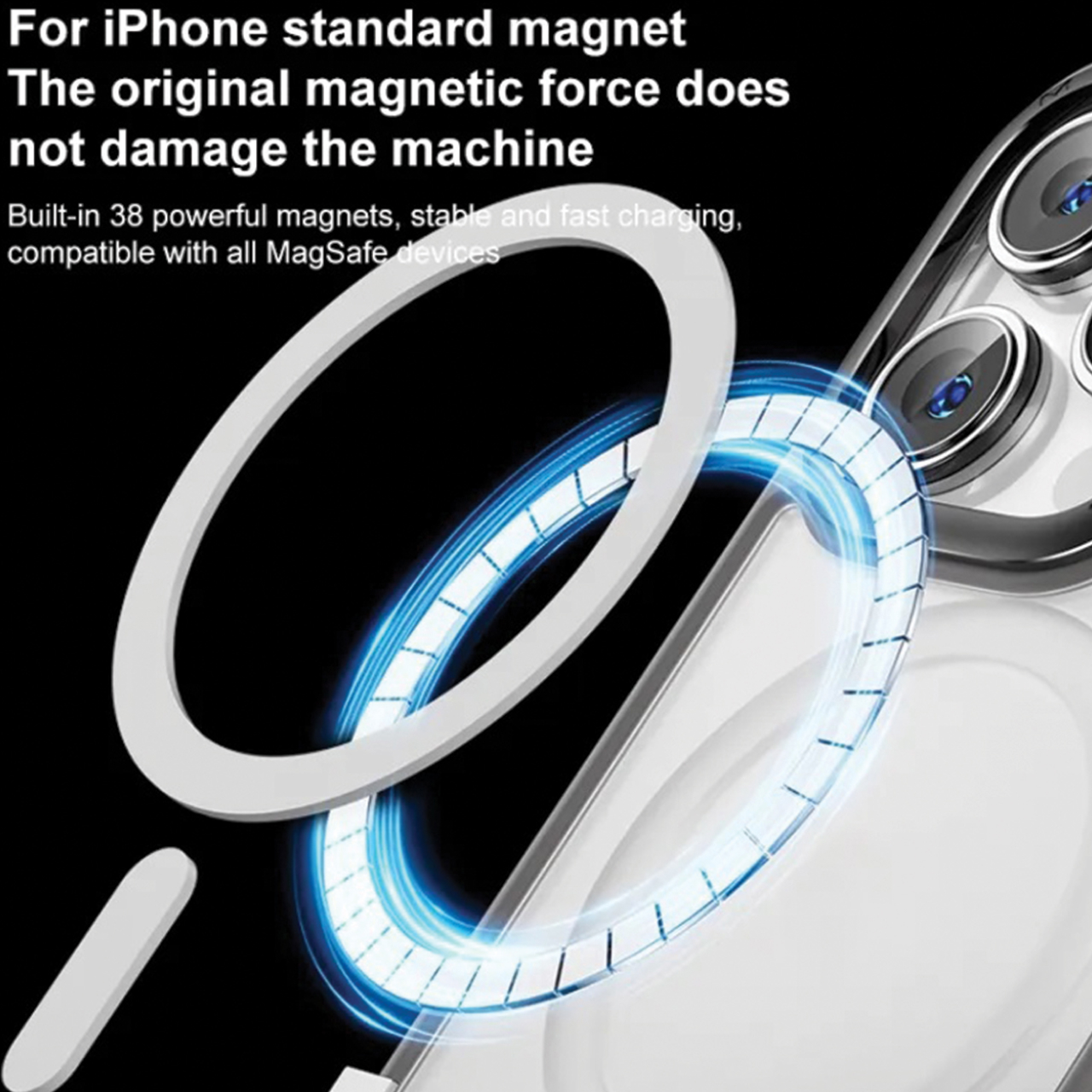 Pada bagian dalam casing terdapat magnetic ring yang menjadikannya kompatibel dengan MagSafe Accessories