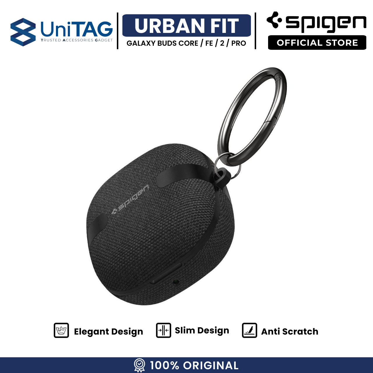 Spigen Urban Fit Case for Samsung Galaxy Buds Core / FE / 2 Pro / 2 / Pro / Live merupakan Hybrid casing yang terbuat dari campuran bahan PC (hardcase) dan bahan Premium fabric pada bagian luar yang akan memberikan kesan elegan serta looks yang elegan.