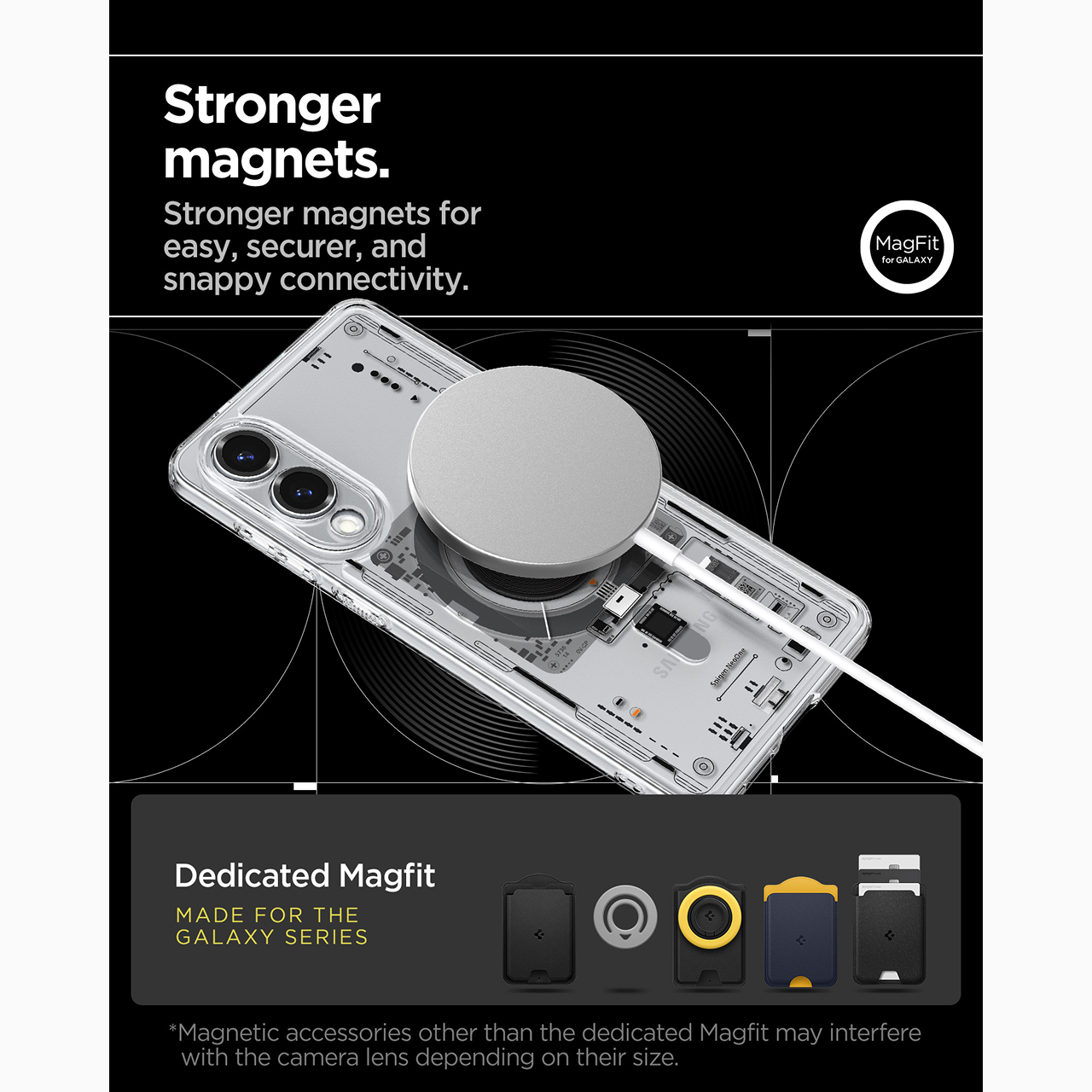 Pada bagian belakang casing terdapat magnetic ring yang menjadikannya kompatibel dengan Magnetic Accessories