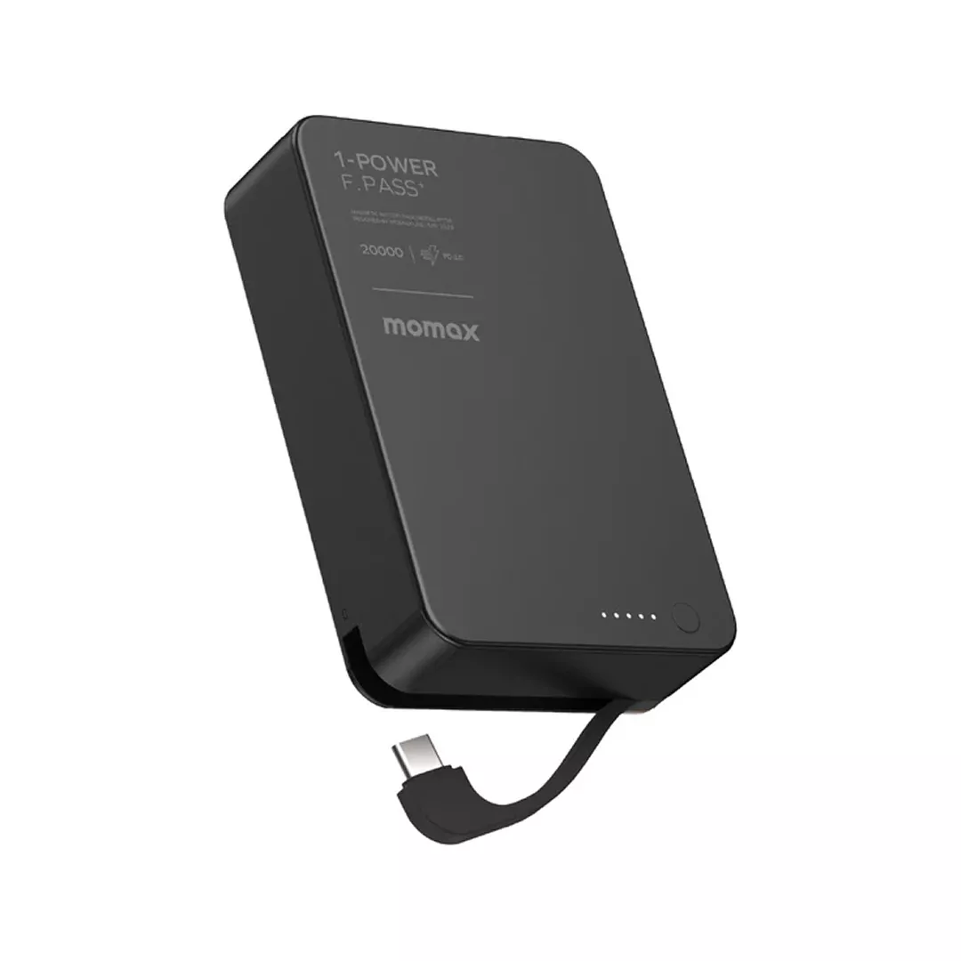 Momax Powerbank Built in Kabel Charger USB C (Magnetic attachment) 20000mAh 1-Power F.Pass+ – Black