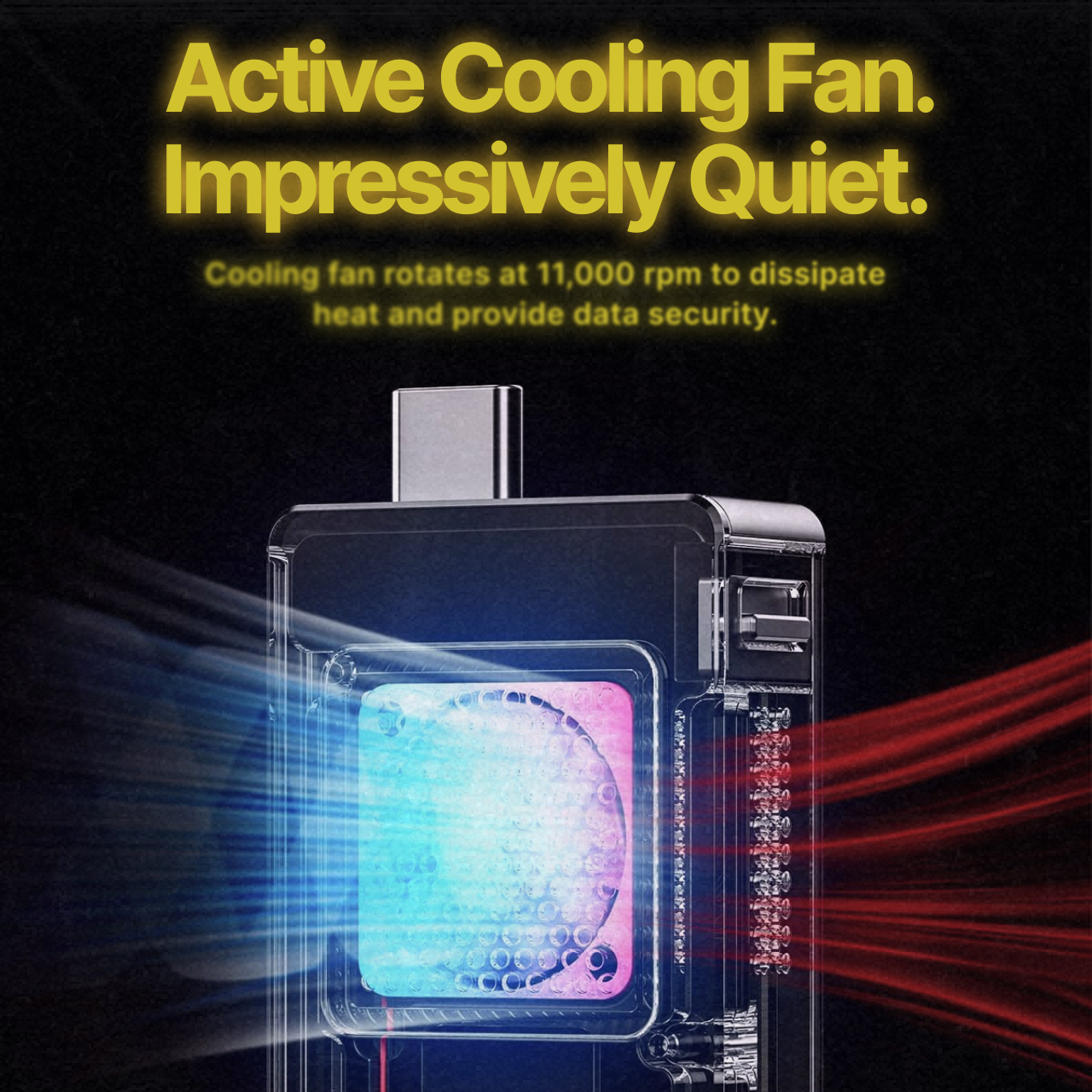 terdapat kipas pada bagian dalam enclosure, mengurai panas SSD sangat digunakan lebih cepat