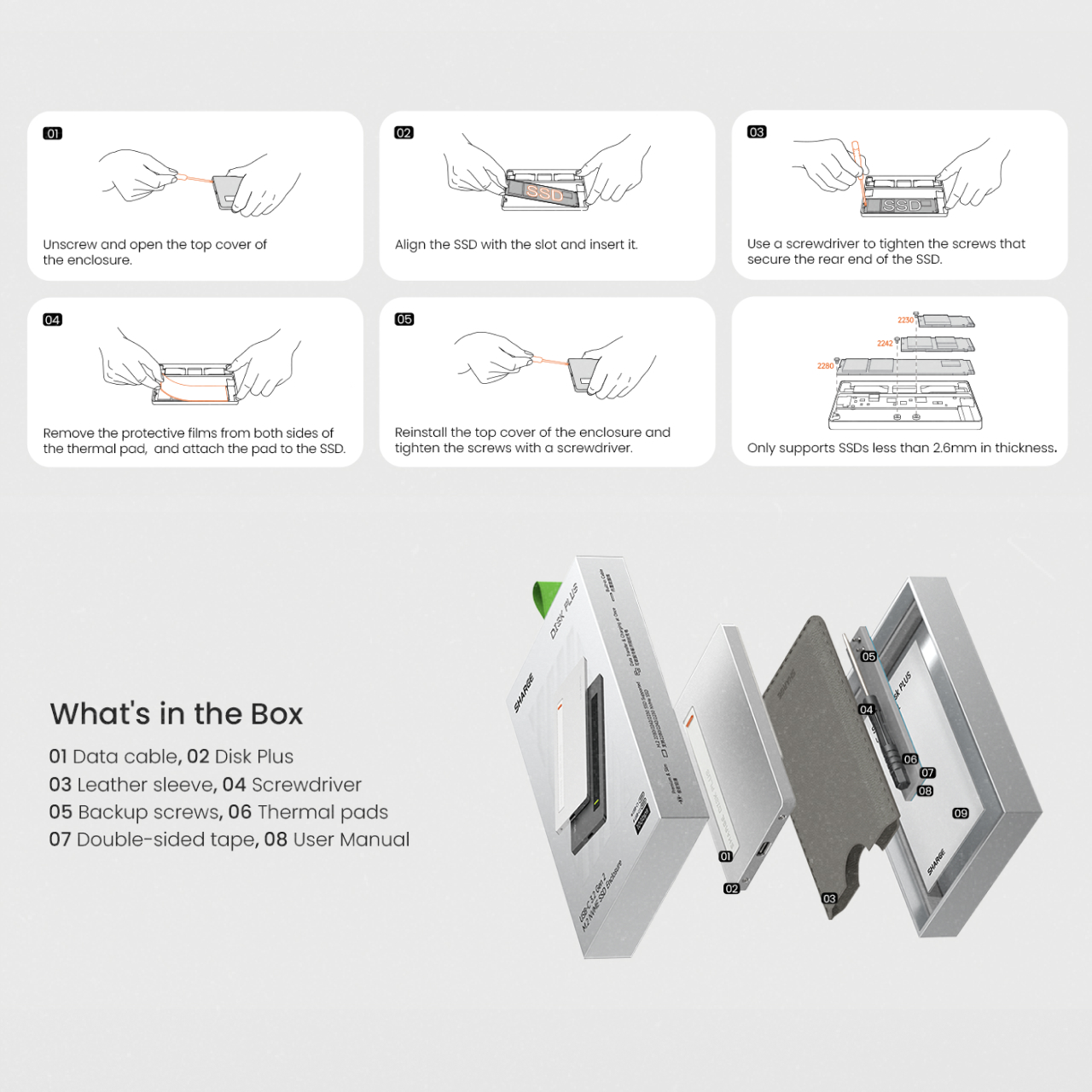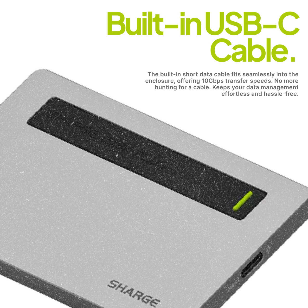 SSD Enclosure case Sharge disk plus dengan desain yang minimalis serta terdapat Build in USB C dengan transfer data hingga 10Gbps, transfer data kencang dan aman secara maksimal !