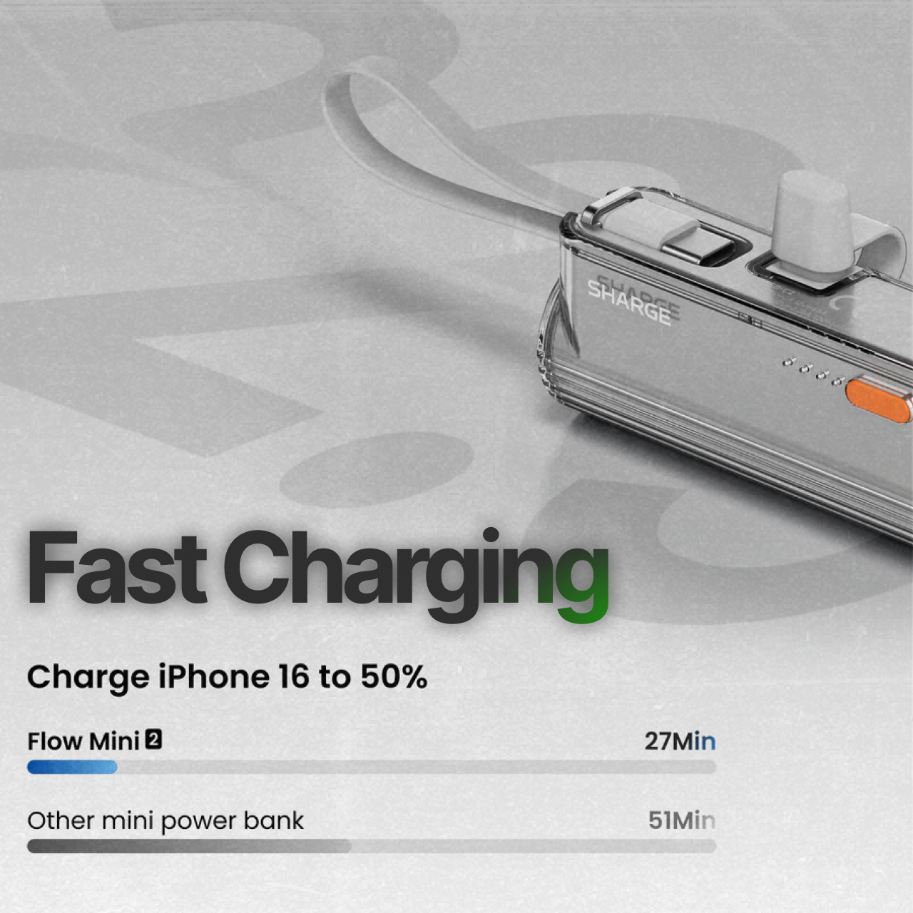 SHARGE Powerbank Flow Mini 2 5000mAh Built-in Type C Lightning PD 22.5W Fast Charging for iPhone Samsung Android