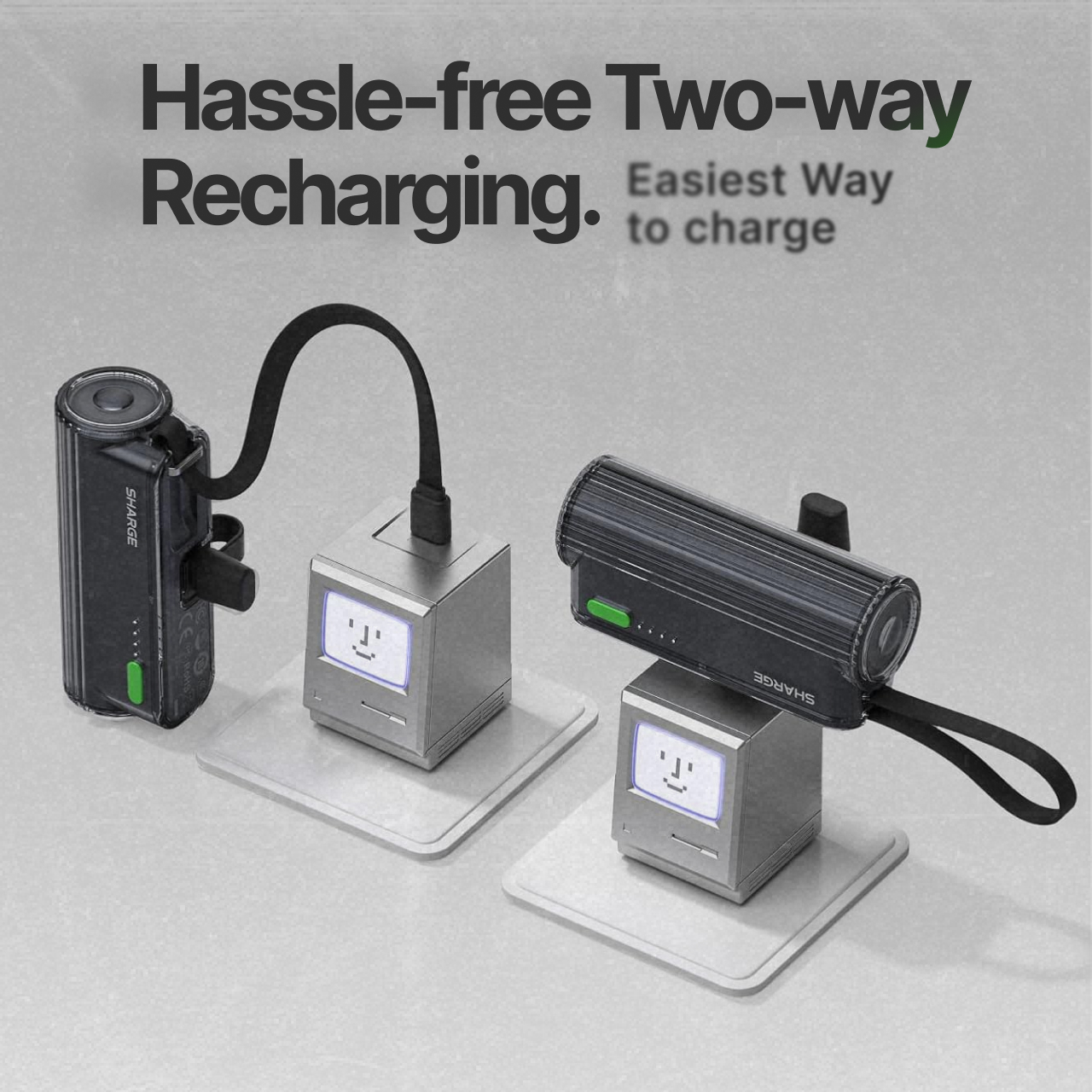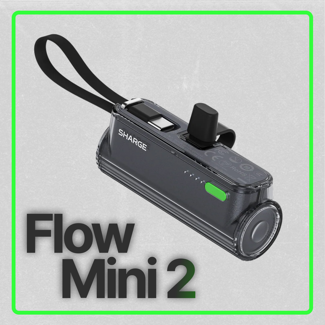 Powerbank USB C Sharge Flow Mini 2 dengan baterai 5000 mAh dengan desain yang memadukan elegan dan futuristik dilengkapi dengan kabel bawaan USB C serta Port yang dapat diubah dari USB C menjadi Port Lightning milik iPhone, baterai aman dimana saja, kapan saja !