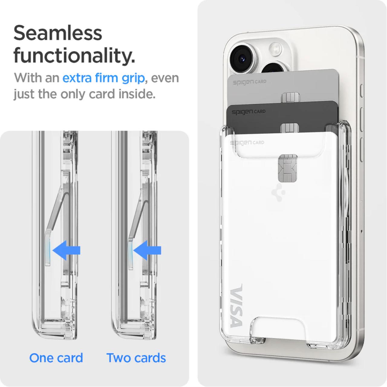 Card Holder Wallet Spigen Magnetic dengan desain minimalist yang dapat menyimpan kartu hingga beberapa slot dan dilengkapi magnet premium yang mampu menempel dengan kuat bikin iphone kamu more trendy, more compact !