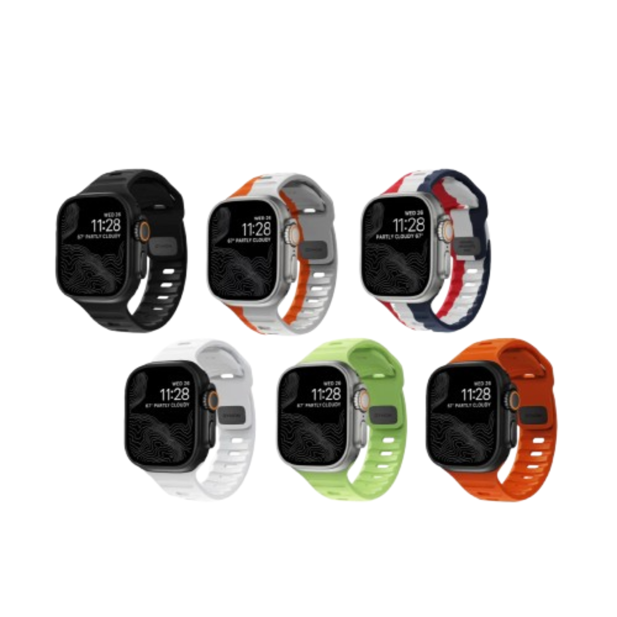 Strap Apple Watch Ultra 2 / 1 (49mm) / 9 / 8 / 7 (45mm) / SE (2022 / 2020) / 6 / 5 / 4 (44mm) / 3 / 2 / 1 (42mm) Nomad Sport Rubber Band adalah solusi untuk anda yang suka melakukan aktivitas diluar ruangan, desain waterproof dan nyaman digunakan.
