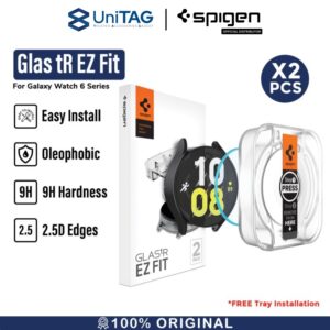 Tempered Glass Samsung Galaxy Watch 7 44mm/40mm Spigen Glas.tR Ez Fit merupakan pelindung layar yang terbuat dari kaca dengan kekerasan 9H Hardness. Dengan Spigen Glas.tR Ez Fit tray, pemasangan tempered glass pada Watch kamu akan menjadi lebih mudah!