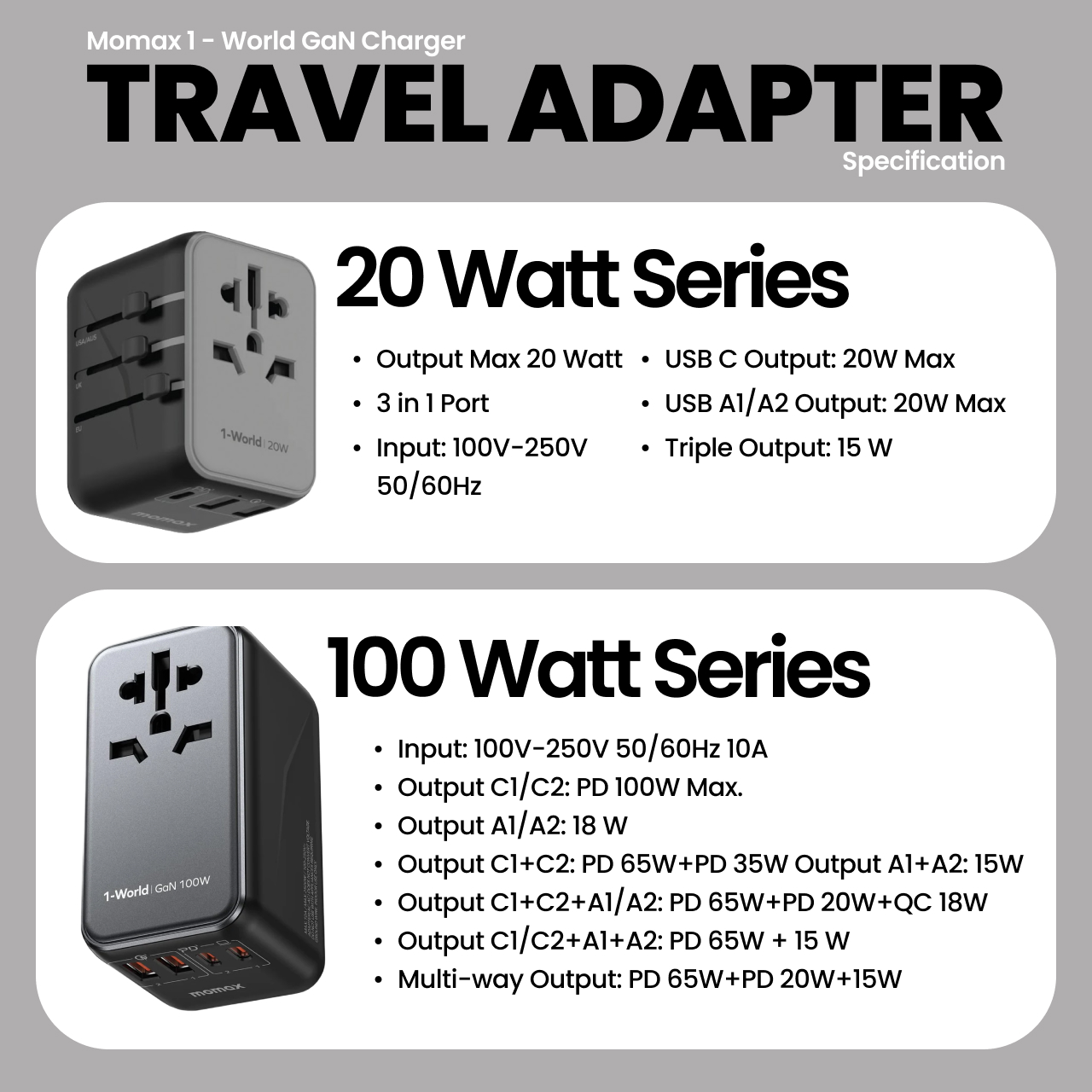 Universal Travel Adaptor Charger Momax 100W/65W/35W/20W US/EU/UK PD QC