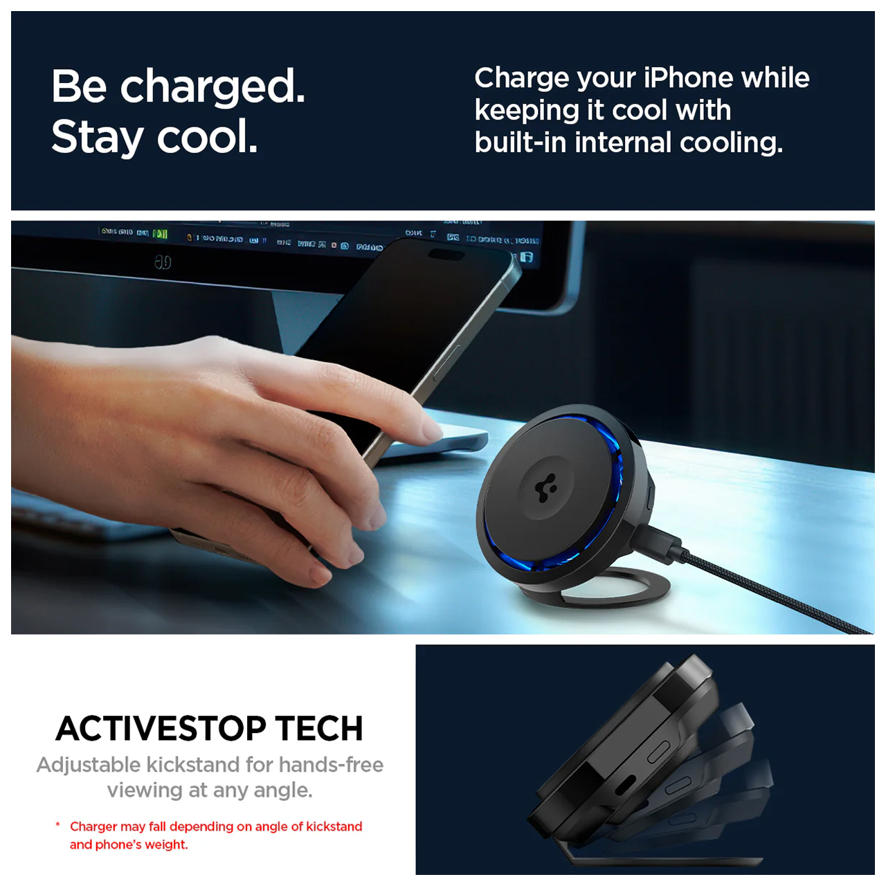 OneTap Pro 3 Cryomax Phone Stand Spigen MagSafe dapat digunakan untuk melakukan pengisian daya. Stand ini dibuat dengan durable material yang menjadikannya kokoh. More compact, more faster!