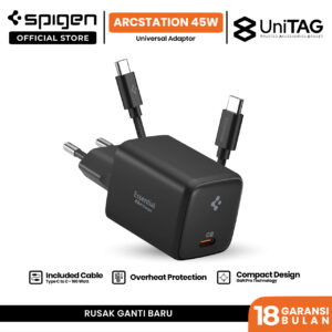 SPIGEN Wall Charger ArcStation Essential GaN 45W 1 Port Type C Fast Charging for iPhone Samsung Macbook PD PPS Free Cable up to 100W